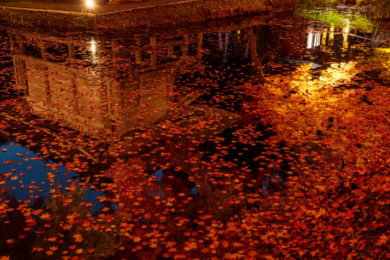 歩くたびに臙脂が光を吸って、背景の紅葉と溶け合う感じが最高。